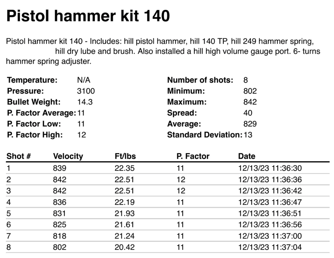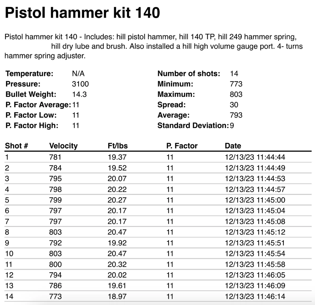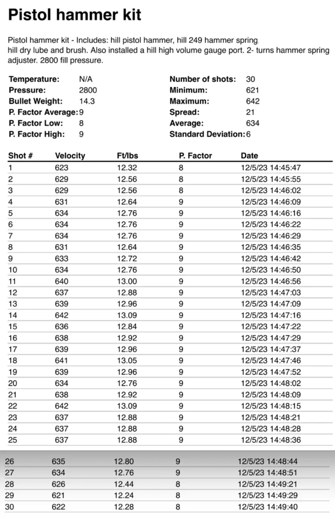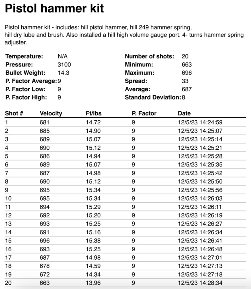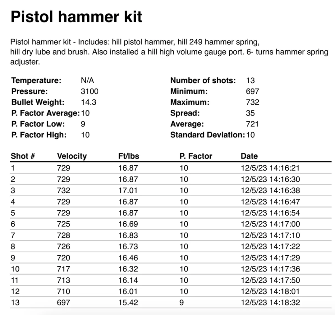 I installed one of these hammer kits into my Marauder Pistol, along with a hill high volume gauge port. The transfer port, valve assembly and other parts are in stock form.