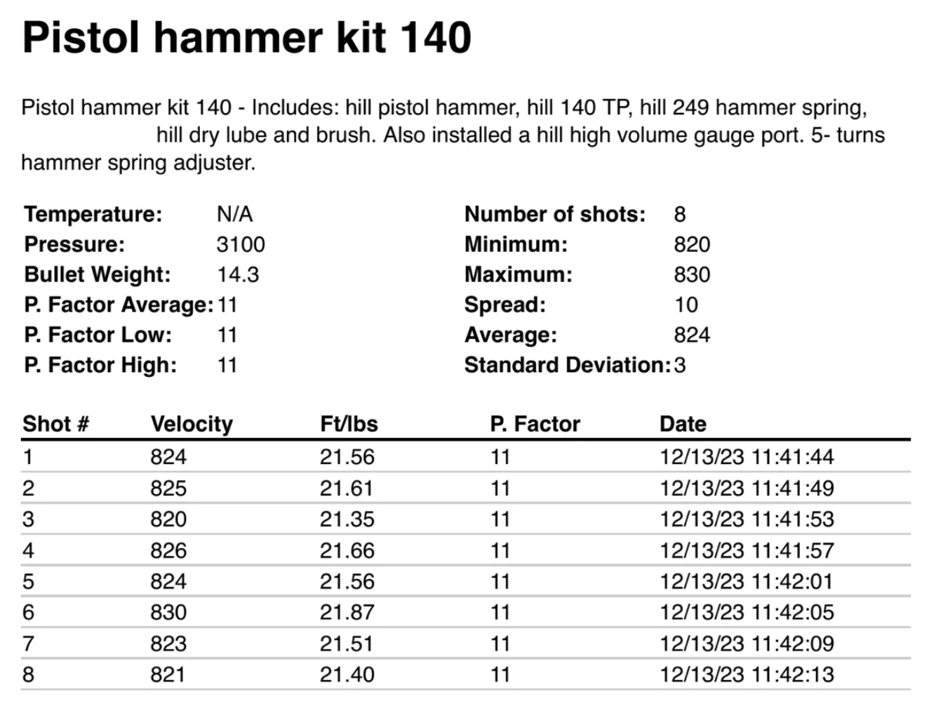 Includes: 1- hill hammer, hill 140 transfer port, 1- hill 249 hammer spring, 1- hill dry hammer lube with applicator brush, easy to follow installation instructions and shipping.